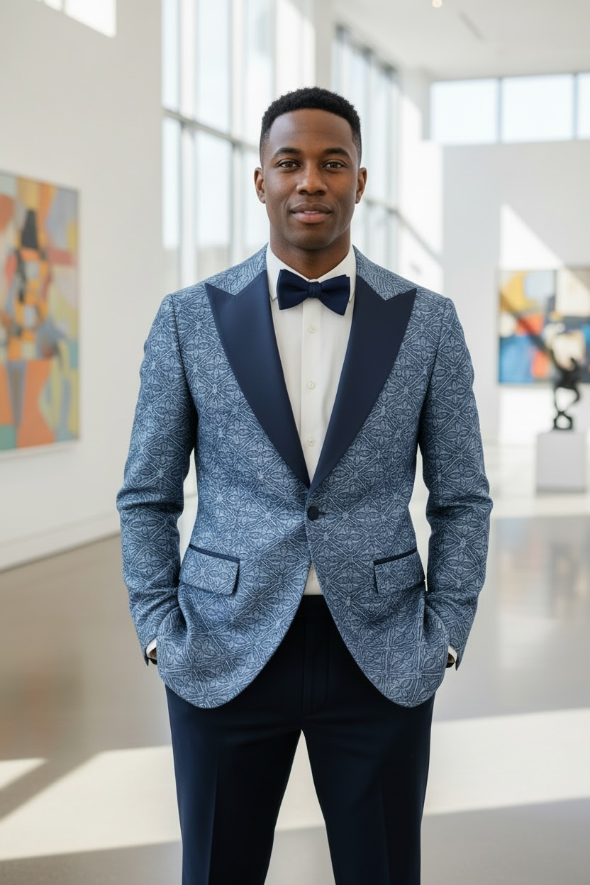 Biarelli Peak Lapel Jacquard Medallion Tuxedo