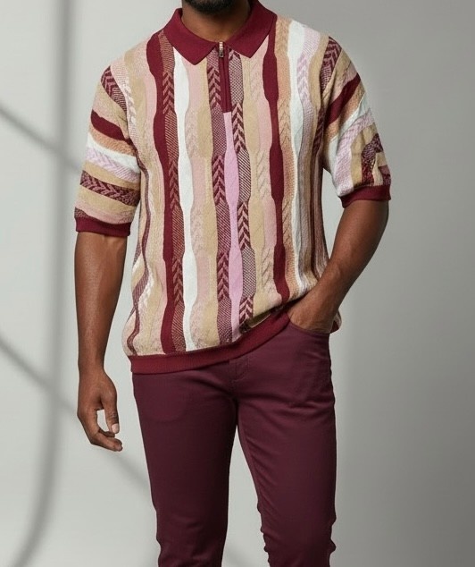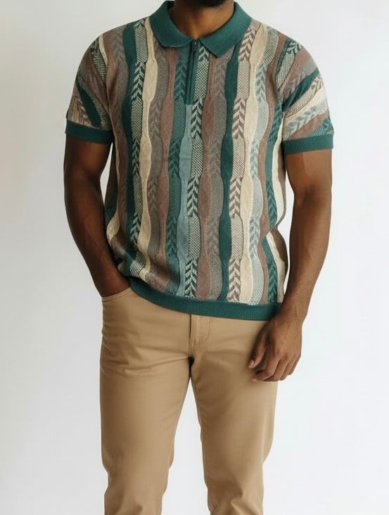 Cigar S/S Tapestry Zip Polo Knit