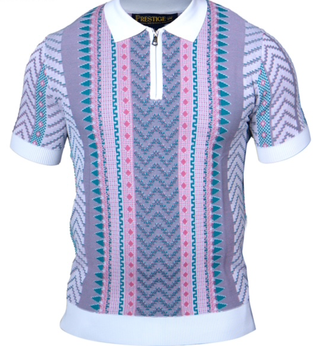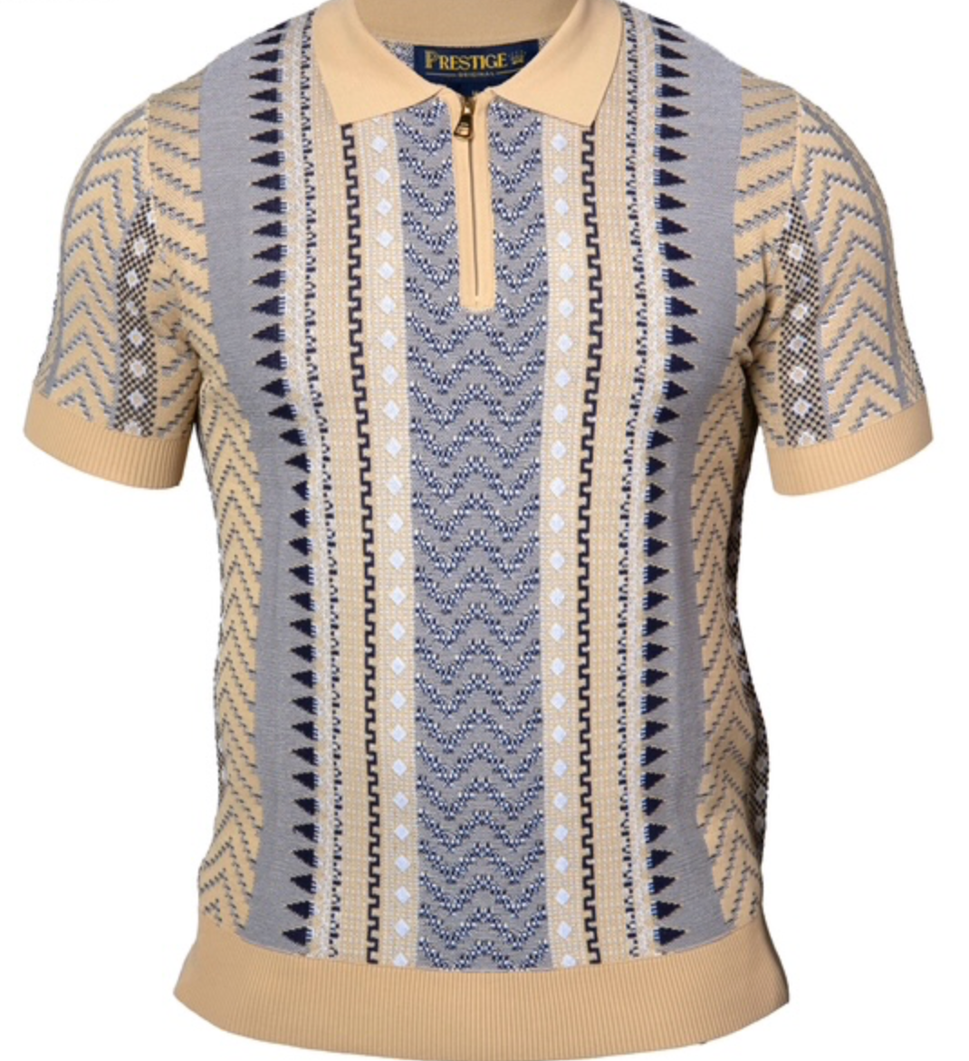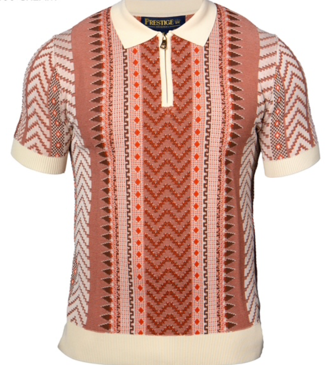 Prestige S/S Zip Polo Aztek Knit Shirt